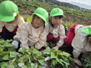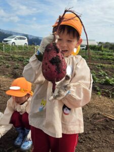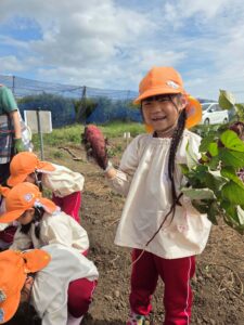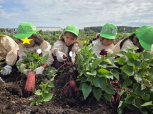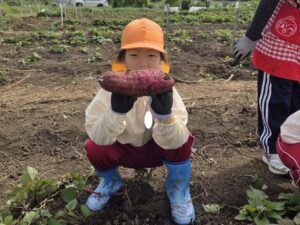 芋畑では、自分の手で一生懸命土を掘り進め、たくさんのお芋をとってきました。