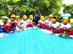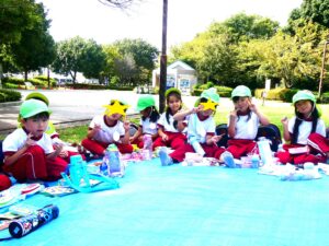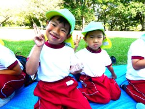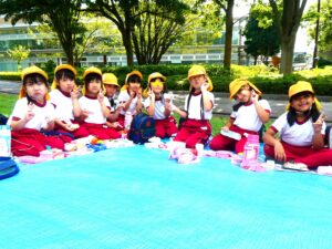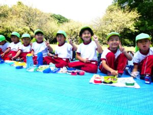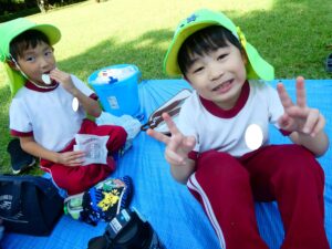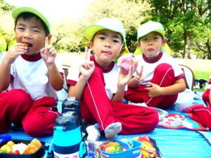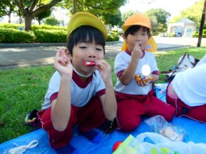 お芋掘りを頑張った後は、花島公園へ場所を移しお弁当の時間です。