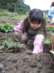 宝探しのように一生懸命土を掘って、お芋を探す子ども達。