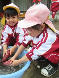 たくさんのお芋を掘り出し、とっても嬉しそうな子ども達でした(*^^*)