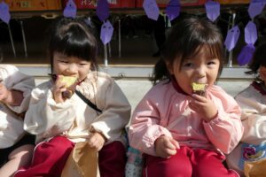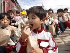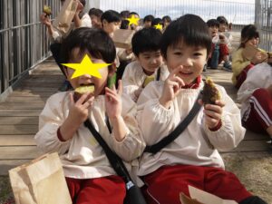 ホッカホカのお芋を美味しそうに食べていた子ども達。