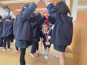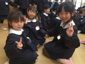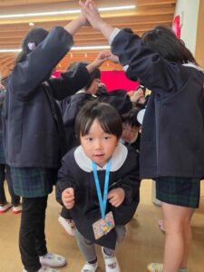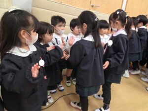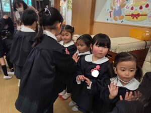 ハイタッチをしたり、アーチを作ってあげたりし、全員で年長組さんのお見送りをしました♪