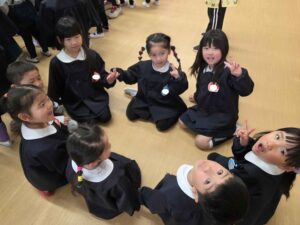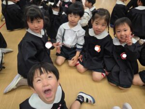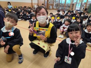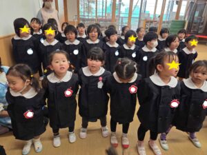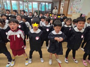 もうすぐ卒園してしまう年長組さんと、もも組さん、年少組さん、年中組さんみんなで