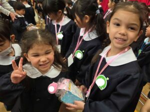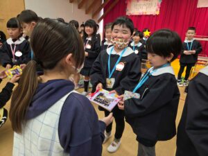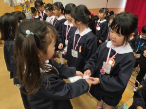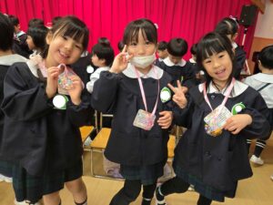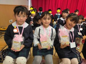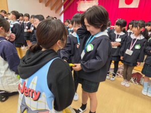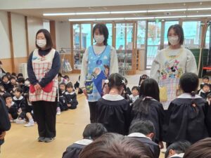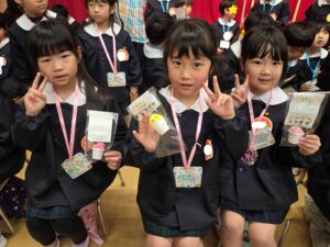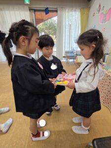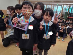 続いて、年長組さんへプレゼントを渡しました。