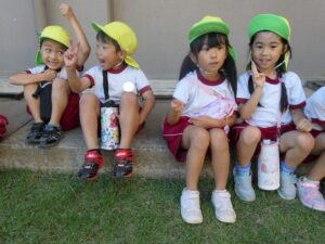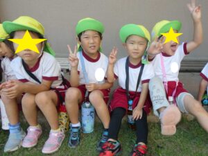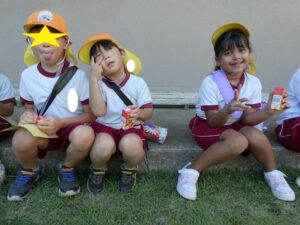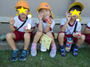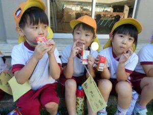 ゴールした子ども達はみんなで、おやつを食べたり、ジュースを飲んだりしながら休憩中(*^^*)