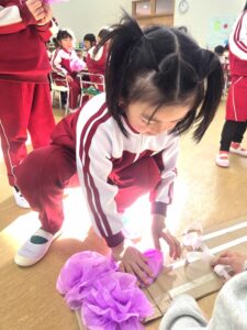 絵を描いたり、廃材で作品を作ったりと、楽しそうに取り組んでいます(*^^*)