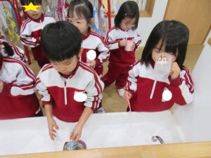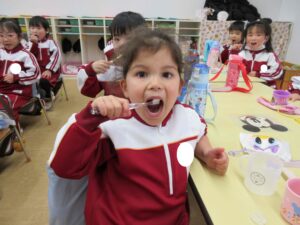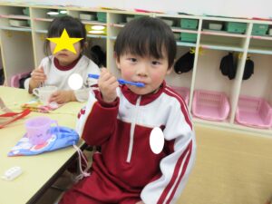 3学期から食後に歯磨きを頑張っている年少組さん♪