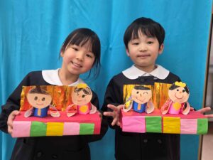 各学年ごとに、とても可愛らしいお雛様を作りました(*^^*)